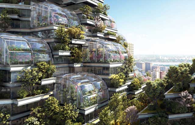 Ovaj projekat predstavlja i meru protiv širenja nekontrolisanog rasta urbanih područja. Voće i povrće će biti primarna vegetacija na balkonima, koji će biti zasađeni na posebno planiranom južnom delu objekta od 45 stepeni koji se sastaje sa strukturnom mrežom stubova i spoljnom konturom zgrade.