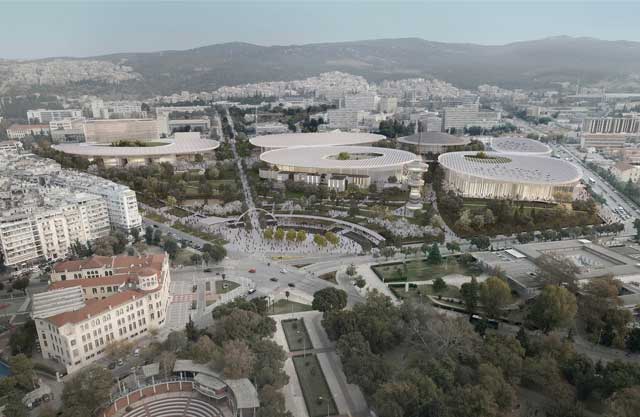 Projekat je uradila međunarodna arhitektonska kompanija Sauerbruch Hutton u saradnji sa Gustafson Porter + Bowman i Elenom Stavropoulou. Pobedničko rešenje je odabrano od 115 prijavljenih, gde su između ostalih bila i rešenja koja su osmislili OMA, Kengo Kuma, Sou Fujimoto, Heatherwick Studio. Drugu i treću nagradu dobili su Lina Ghotmeh i UN Studio.
