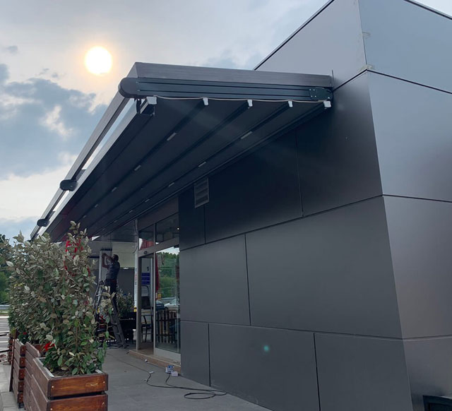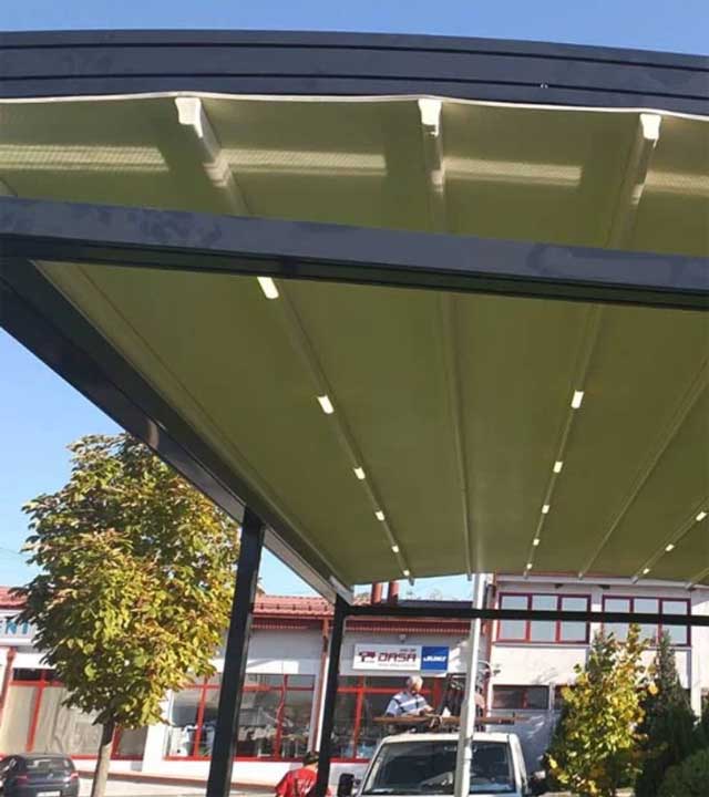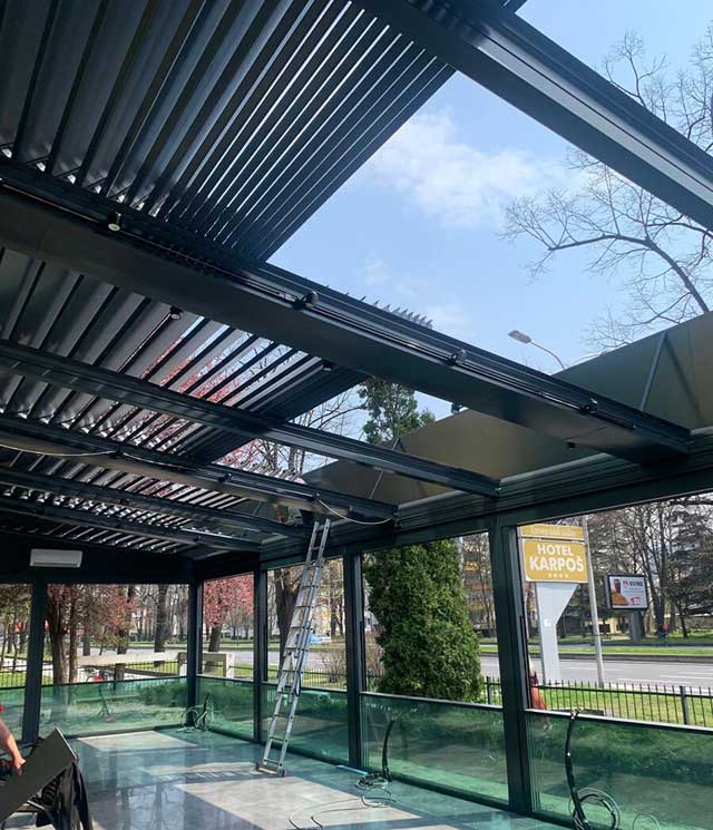 Sastoje se od stabilne konstrukcije i nadstrešnice, stvarajući efekat prostorije na otvorenom. Mogu se pomerati i prilagođavati različitim vremenskim prilikama, a postoji i mogućnost upravljanja putem daljinskog upravljača.