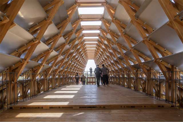 Drveni most dizajnirao je Luo Studio, dugačak je 25m, a njegova unutrašnjost meri 166m2. Izgradnja je trajala od marta 2021. do januara 2022. godine.