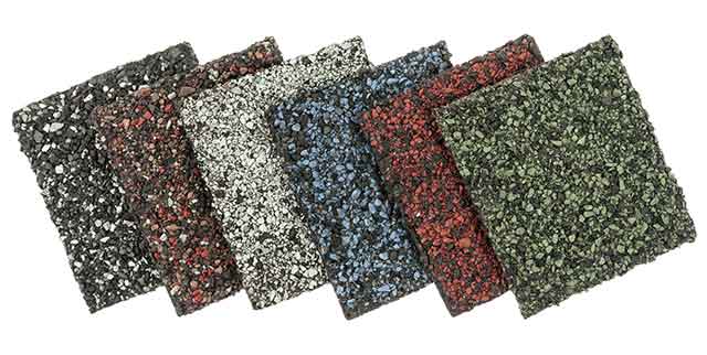 Ono što tegolu čini prepoznatljivom jesu granule na površini. One se dobijaju usitnjavanjem stena sa specifičnim fizičkim svojstvima. Keramičkim pečenjem dobijaju postojanost i različite boje – crvena, zelena, crna, siva, plava, braon tegola.