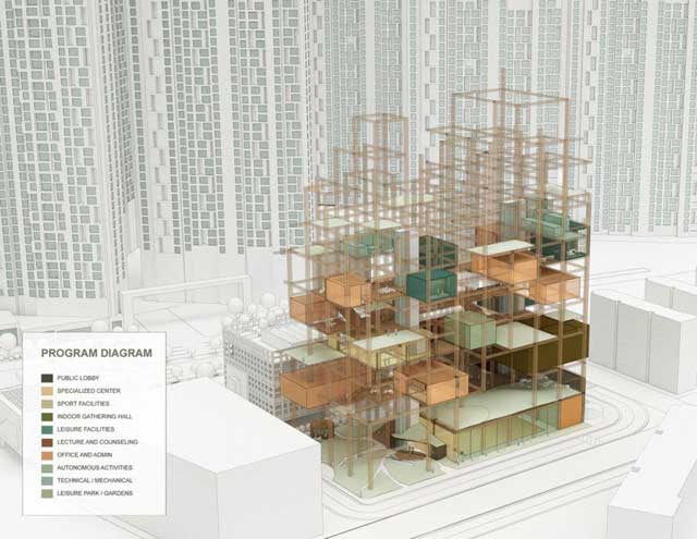 Namera je da Omladinski centar postane mesto koje će tinejdžerima pomoći da razviju veštine neophodne za suočavanje sa izazovima budućnosti. Koncept je nastao iz ideje da je mladost kao drvo koje raste. Dizajneri su inspiraciju našli u jednom od snažnih simbola ovog podneblja - drvetu Zelkova Serrata ili neutinamu, koje simbolizuje zdravlje.