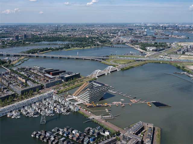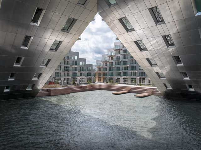 Bjarke Ingels Group (BIG) i Barcode Architects 2016. godine otkrili su planove za ambicioznu stambenu zgradu mešovite namene, dostupnu sa vode i kopna, koja upečatljivim dizajnom podseća na pramac broda. Projekat, nazvan Sluishuis, sada je konačno završen i pruža idiličnu, energetski efikasnu zajednicu na obali.