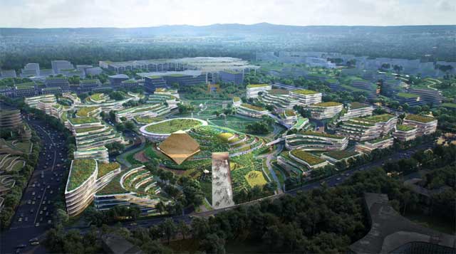 Nalaziće se oko vladine zgrade sa krovom nalik na iglu, a više od 60 odsto centralnog okruga biće ispunjeno zelenilom ili vodom.
