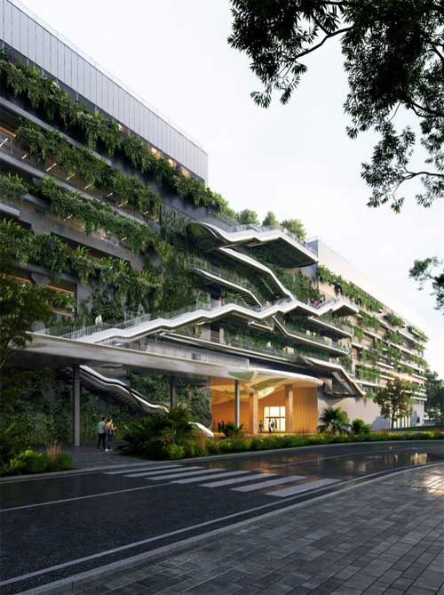Brojne biljke i polirano metalno stepenište ulepšaće spoljašnjost MoLo ulazne zgrade i višespratnog parkinga koji kineski studio MAD projektuje za naselje u blizini Milana u Italiji.