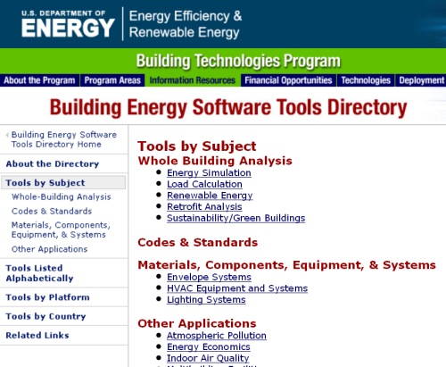 Na stranici Building Energy Software Tools Directory možete pronaći spisak oblasti prema kojima su linkovi podeljeni, i zavisno od onoga što vam je potrebno, pretražiti ponudu softvera za modelovanje energetski efikasnih zgrada.