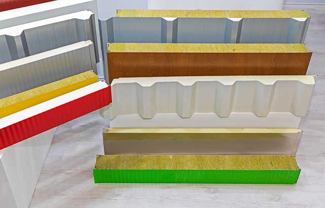 Najčešće se koristi PIR, PUR ili kamena vuna. Za limove se najčešće koriste pocinkovani ili čelični paneli sa nanesenim slojem određene boje (bela, plava, crna, zelena, bordo, siva, braon, krem). Po želji površina lima može biti od plemenitog metala i to najčešće od bakra.