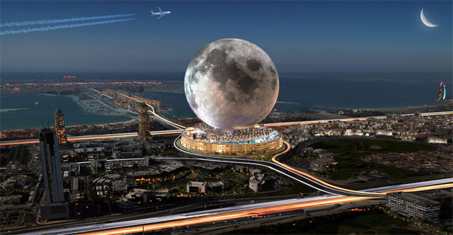 Iznad podijuma, struktura visoka 224 metra biće zatvorena u okviru "najveće sfere na svetu", koja bi spolja izgledala kao mesec.