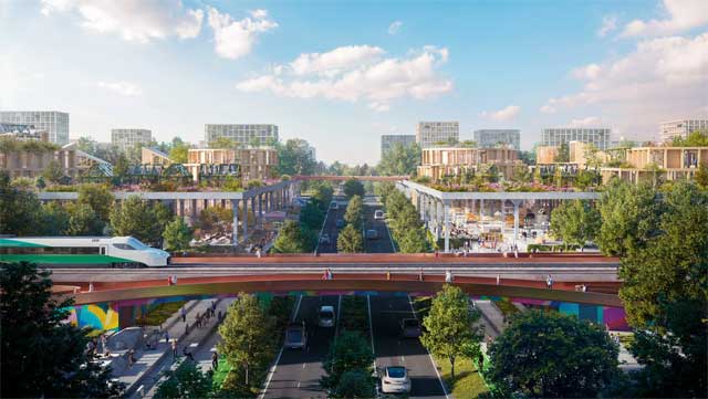 Planirani kvart biće uređen oko piste duge dva kilometra pretvorene u pešački koridor koji povezuje objekte izgrađene na lokaciji od 520 hektara.