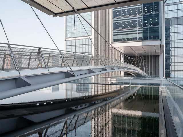 Viseći most na visini od 105m predstavlja zgodan način prelaska iz jedne kule u drugu. Dodatno, sistem dvostrukih liftova postavlja dva lifta u isto okno, povećavajući upotrebljivi kancelarijski prostor.