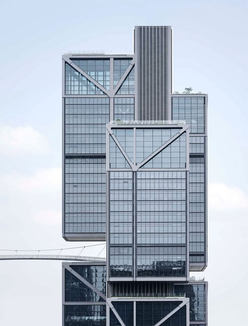 Ove dve zgrade dostižu visinu od 194m i 212m. Imaju prilično složenu strukturu jer se svaka kula sastoji od centralnog čeličnog dela, sa konzolnim zastakljenim "kutijama" koje vire napolje, a u njima se nalaze kancelarijski prostori i istraživačke oblasti.