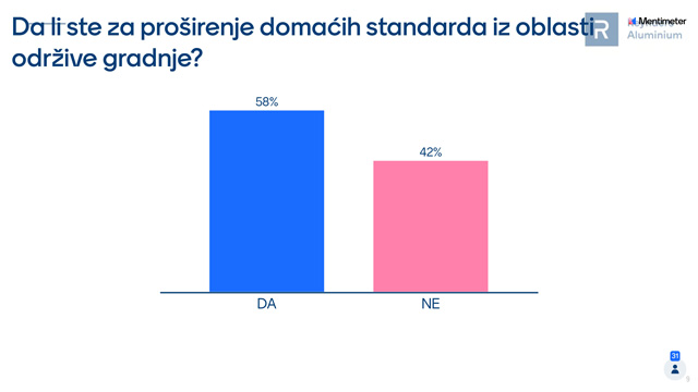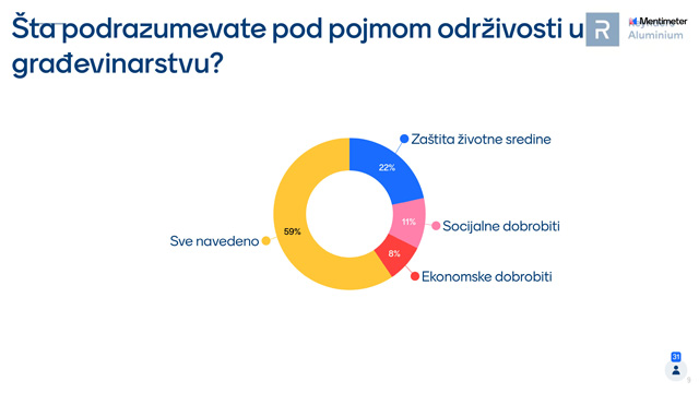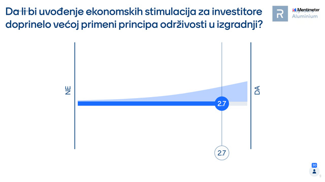Zanimljivo mišljenje učesnika foruma je da u implementaciji principa održivosti skoro podjednako treba da učestvuju: projektant, investitor i regulatorna tela. Po učesnicima skupa, najveću prepreku primeni principa održivosti u gradnji čini neobrazovanost, neinformisanost i nerazumevanje.