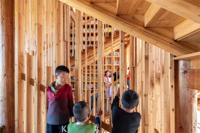 Ova biblioteka se nalazi u Hunanu u Kini, u okviru osnovne škole koju pohađa oko 400 dece. Zgrada je blago podignuta kako bi se zaštitila od poplava, a dizajnirana je pod uticajem tradicionalnih kineskih kuća. Krov je pokriven crepom, a konstrukciju čine međusobno povezane drvene grede.