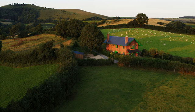 Crvena kuća se nalazi u ruralnom Dorsetu, u jugozapadnoj Engleskoj. Projekat je nastao kada su se njegovi vlasnici zaljubili u idiličnu lokaciju i predivan pogled 2011. godine. Nakon višestrukih lažnih početaka i redizajniranja, uz promenu arhitekte, konačno su se uselili u svoj novi dom deceniju kasnije.