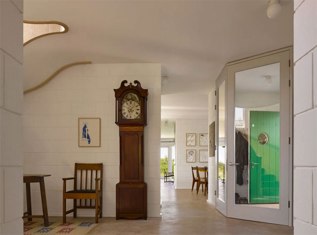 Kuća ima dva sprata i 284 kvadratna metra. Otvoreno prizemlje pruža laganu, prozračnu atmosferu i obezbeđivaće lak pristup kada vlasnici ostare. Ovo je bio ključni fokus za projekat, a drugi komplementarni elementi uključuju stepenište sa dva rukohvata, zaobljene uglove na ugrađenom nameštaju, držače na prednjim stranama ormana, upotrebu ručki na vratima koje se ne okreću i lift.