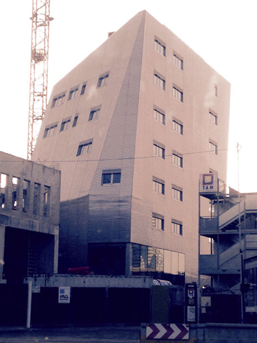 Spratovi nove zgrade se naslagali kao nesložena kocka. Njen ten od titana na dnevnom svetlu menja tonove privlačnog zelenog sjaja, zavisno od temperature i raspoloženja, kao opna trbušnih segmenata odjednom razgolićenog stomaka na leđa okrenute bubašvabe, uhvaćene u zamku prilikom brišućeg istrčavanja iz tople tame ispod hladnog frižidera.