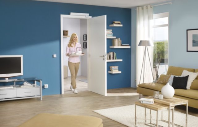 Slika 1: Motori za vrata su bitan sastavni deo stanovanja. Novom motoru PortaMatic od Hörmann-a je potrebno manje struje i 25 % je povoljniji nego slični motori za unutrašnja vrata.
