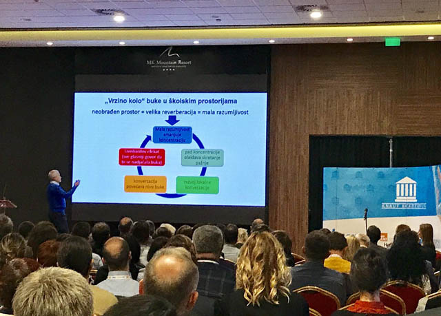 Pored naših cenjenih profesora i arhitekata, na ovogodišnjoj konferenciji su po prvi put učestvovali eminentni predavači iz inostranstva. Predstavljanjem svojih projekata svi su dali poseban doprinos „Akademiji“, naglašavajući značaj zvučnog komfora u javnim objektima kao što su škole, hoteli i bolnice.