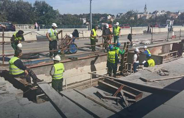 Slika. Izvođenje radova na Brankovom mostu (foto: Direkcije za građevinsko zemljište i izgradnju Beograda)