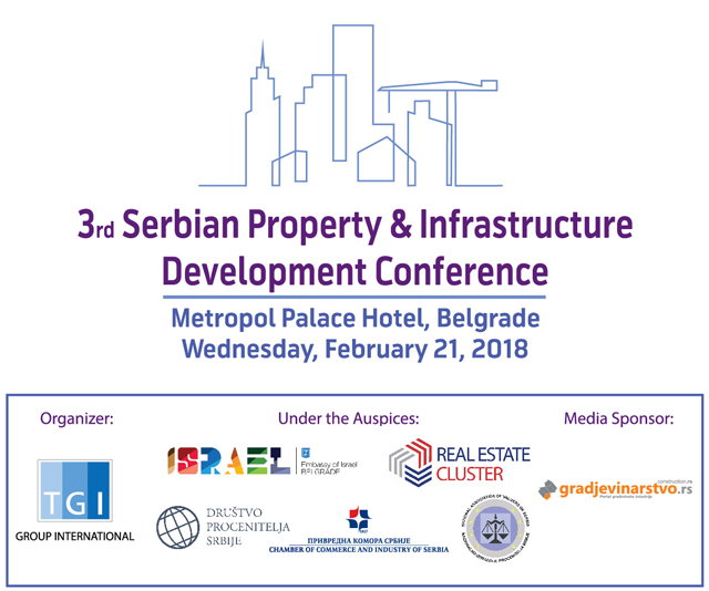 Treća srpska konferencija o razvoju nekretnina i infrastrukture odžava se u Beogradu, u Hotelu Metropol Palace 21.02.2018. godine.