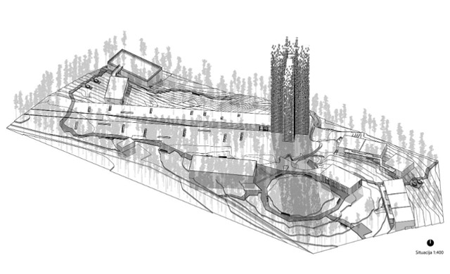 Kompleks bi se nalazio, kažu oni, na drugoj najvišoj koti između crkve Jovana Šangajskog i planinskog doma na području od 2 hektara izlomljenog pravougaonog oblika smeštenog u samoj šumi, uz postojeći rimski put koji je tangira sa južne strane. Celokupan predmet intervencije na lokaciji je planiran i organizovan po nivoima, odnosno fazama.