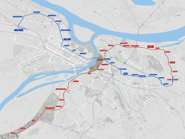 - Linija 2, Železnička stanica Zemun - Mirijevo, dužine 19,2 km, sa 20 stanica (na slici je označena plavom bojom)