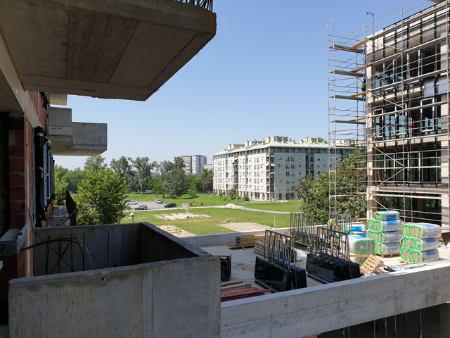 U toku je izvođenje elektroinstalacija, vodovoda i kanalizacije na objektu. Stanovi su ozidani, i radi se na malterisanju i pripremi za keramičarske radove.