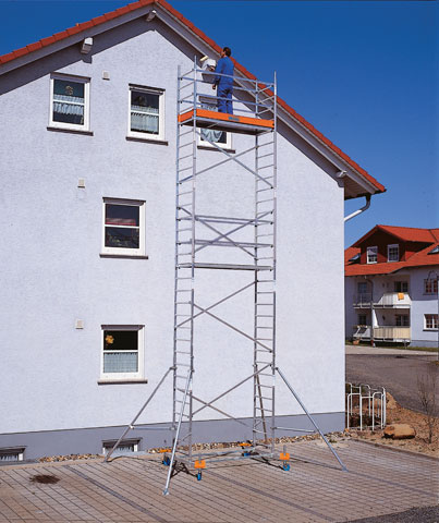 Ove skele su ispitane od strane TÜV/GS i zadovoljavaju norme EN 1004 (nosivost 200kg/m²). Radna platforma je izrađena od slojevite ploče s fenolskim slojem, otporna na vodu, neklizajuća pogodna za rad i na neravnim terenima.