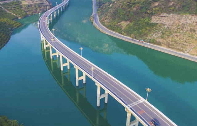 Takav građevinski poduhvat još nije viđen u svetu, a razlog da se radi na ovaj način je želja kineskih graditelja da prate liniju koju je stvorila sama priroda. Oni su izgradili auto-put preko reke. To je bila i ekonomska i ekološka odluka.