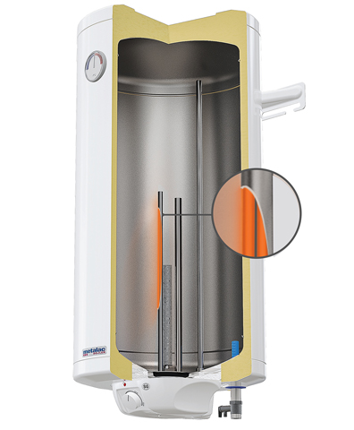 Suvi grejač je smešten u prohromsku cev, na čijoj površini se kamenac teže zadržava. U situacijama kada na dnu bojlera postoji veća količina kamenca, velika površina duge prohromske cevi obezbeđuje da razmena toplote između suvog grejača i vode bude i dalje efikasna.