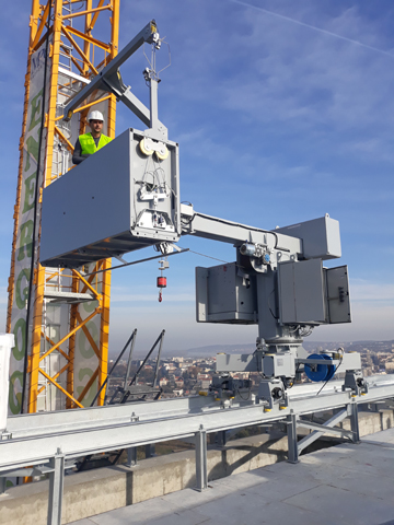 U pomenutom projektu sistem je trajno postavljen i služi za održavanje aluminijumsko staklene fasade.