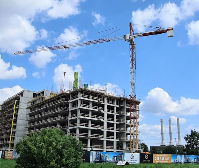 Dizalice Potain firme K.I.G.O. d.o.o. na gradilistu "Sakura Park" u bloku 58 na Novom Beogradu aktivno rade od jula 2019. godine.