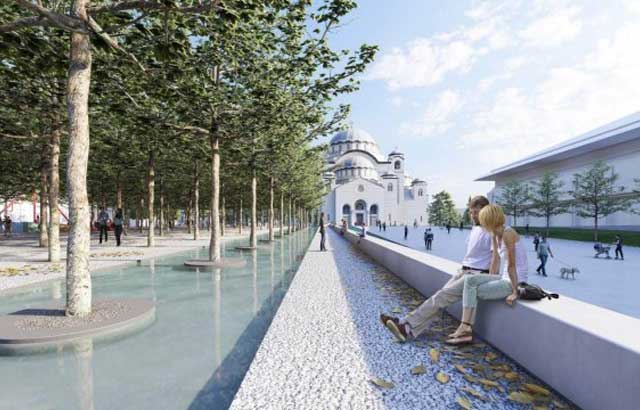 Park ispred Hrama Svetog Save (autori rešenja: akademik Branislav Mitrović i Dejan Miljković)