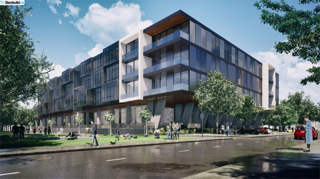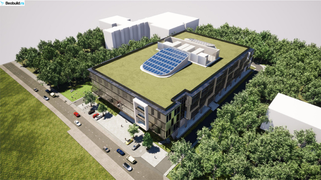 Parcela za ovakvo korišćenje je jako ograničenih dimenzija, tesno ugurana između dva već izgrađena objekta, pa će nova zgrada zauzimati najveći deo parcele. Iako je Planom generalne regulacije utvrđena optimalna zauzetost parcele od 50%, ovde taj parametar nije bilo moguće ispuniti, već je projektom ostvarena zauzetost od čak 64%. Razuđenost dva susedna objekta će delimično ublažiti efekte njenih gabarita. Prostor između novog objekta i bočnih građevinskih linija iskorišćen je za smeštanje kružne servisne saobraćajnice za kolski pristup garažama, ekonomskom ulazu i tehničkim službama, tako da na parceli nema mesta za javne površine i zelenilo. Ukupna bruto kvadratura budućeg kompleksa iznosi skoro 32.000m², od čega oko 8500m² otpada na podzemne etaže (2Po+Pr+3+Te). Objekat će posedovati i podzemnu garažu sa 153 parking mesta, kao i 15 parking mesta na parceli.