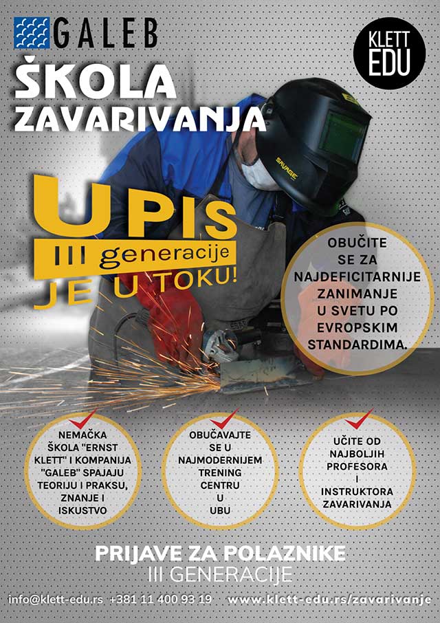 Klett EDU, nemačka škola za dualno obrazovanje i kompanija Galeb pokrenuli su zajednički projekat – Školu zavarivanja, iz koje su izašle već dve generacije zavarivača.