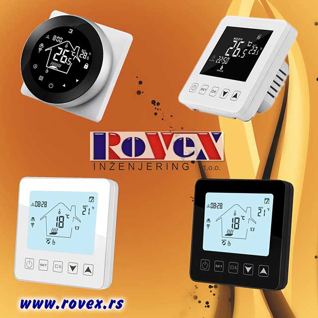 Rovex Inženjering nudi više modela termostata za podno grejanje od elektronskog do WiFi modela termostata.