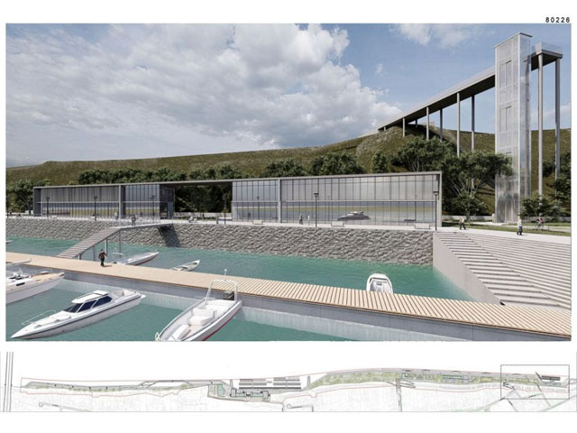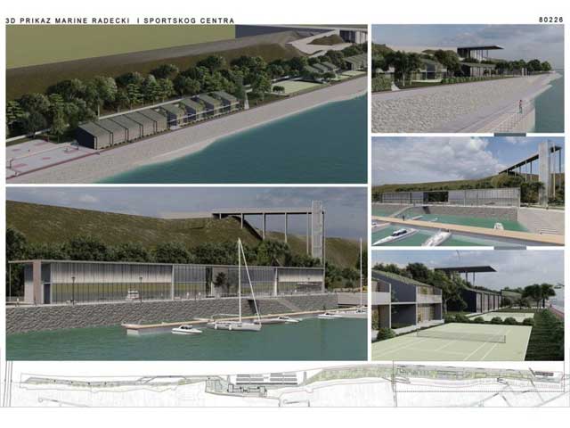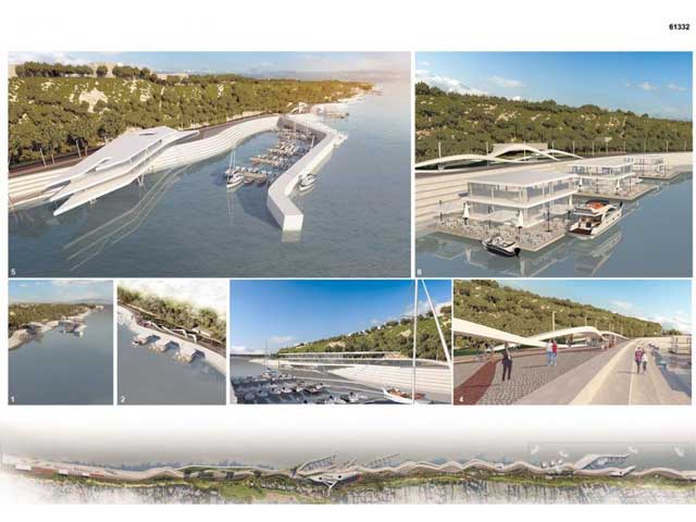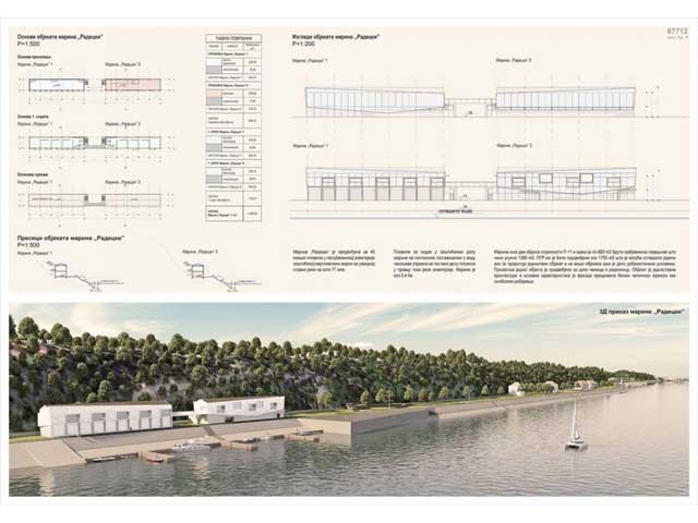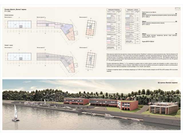 U sklopu marine je predviđen objekat maksimalne spratnosti P+2 i površine 7.500 m2, sa turističko-komercijalnim i ugostiteljskim sadržajem. Objekat je zamišljen kao poluotvoreni, tako da bude stalno u interakciji sa prirodom, pa se tako sa leve strane oba dela objekta nalazi otvoreni atrijum.