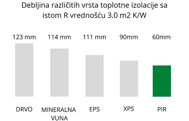 PIR je tanji od većine poliuretanskih izolatora, tako da materijal ne stvara prevelika opterećenja na nosećim konstrukcijama.