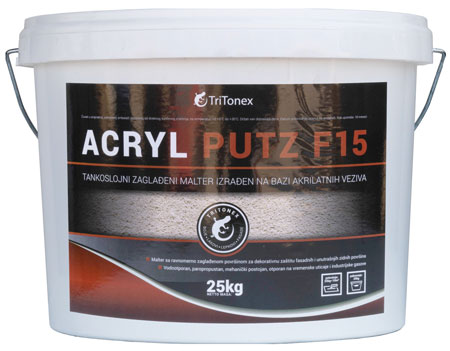 Zaštitno-dekorativni akrilni malter za obradu spoljašnjih i unutrašnjih zidnih površina. Acryl Putz R15 je tankoslojni završni malter izrađen na bazi akrilnih veziva, sa karakteristično ravnomerno zaglađenom površinom. Malter je vodoodbojan i paropropustan, otporan na atmosferske uticaje, dobro prijanja za podlogu i poseduje visoku mehaničku otpornost.