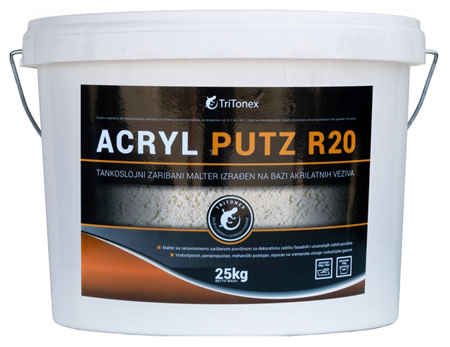 Zaštitno-dekorativni akrilni malter koristi se za obradu spoljašnjih i unutrašnjih zidnih površina. Acryl Putz R20 je tankoslojni završni malter izrađen na bazi akrilnih veziva, vodoodbojan i paropropustan, otporan na atmosferske uticaje i UV zračenje, dobro prianja za podlogu i poseduje visoku mehaničku otpornost.