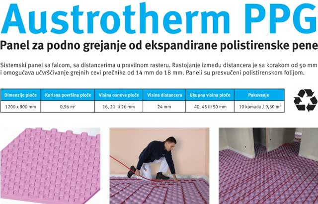 Austrotherm d.o.o. će u drugoj polovini aprila započeti sa plasmanom svog novog sistemskog panela za podno grejanje na tržišta Srbije, Crne Gore i Severne Makedonije. Reč je o panelu izrađenom na bazi EPS-a (ekspandiranog polistirena), sa tzv. "pečurkama" u pravilnom rasteru, kao što je to bio slučaj ranije, ali će ovaj put taj sistemski panel biti drugačijih, uvećanih dimenzija (1200mm x 800mm), sa falcom po obimu širine 20mm.