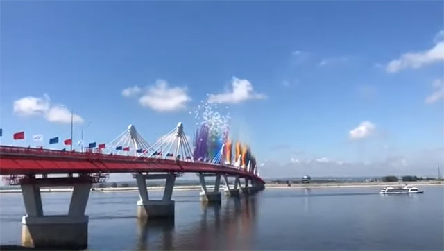 Ceremonija svečanog otvaranja mosta za saobraćaj održana je posredstvom telekonferencije iz studija u Moskvi, Vladivostoku, Pekingu, Blagoveščensku i Hejheu.