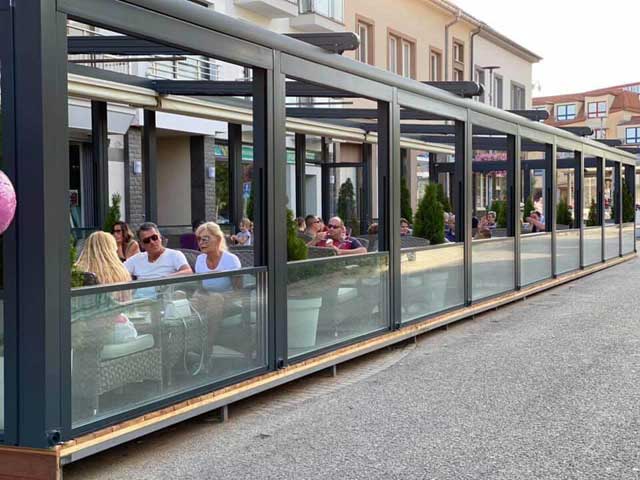 Sistemi motorizovanih vertikalnih pokretnih stakala namenjeni su za bočno zastakljivanje terasa. Ovakvim zastakljivanjem dobija se sjajna izolacija prostora, koja ne sputava panoramski pogled sa terase vašeg doma ili iz bašte lokala.