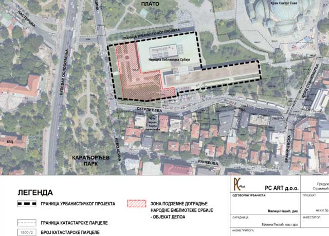 - Prostor koji je predviđen za izgradnju novog depoa je određen postojećim objektom Narodne biblioteke Srbije sa istočne strane, Skerlićevom ulicom sa južne strane, Nebojšinom ulicom sa zapadne strane i svetosavskim platoom sa severne strane. Predmetni prostor je delimično zauzet parternim uređenjem, koje čine betonske kaskade sa žardinjerama i nekoliko armiranobetonskih stepeništa popločanih kamenom, koje je neophodno ukloniti kako bi se sprovela nova gradnja - navodi se u urbanističkom projektu.