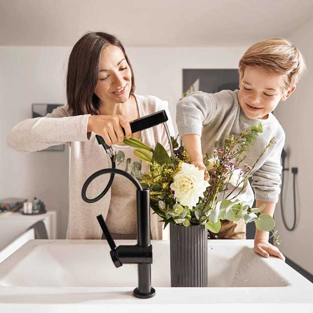 Finoris sa svojom varijantom sa izvlačnim tušem nudi dovoljno slobode kretanja i čini te svakodnevne poslove lakim. Brzo pranje kose direktno u umivaonik više nije problem sa glavom slavine na izvlaćenje, kao i ispriranje umivaonika.
