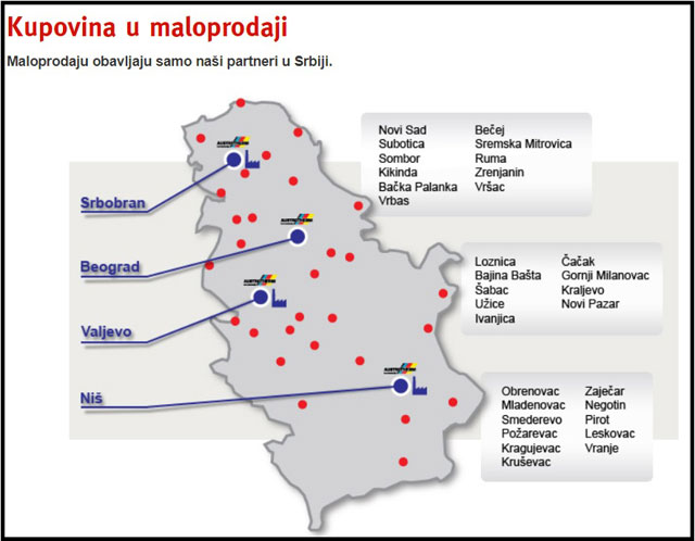 Tu je prezentovano preko 250 distributera Austrotherm d.o.o. u zemlji, odnosno njih 30-ak u Crnoj Gori koji su redovno snabdeveni svim proizvodima iz proizvodno-distributivne palete ovog proizvođača. Osim prikaza na geografskoj karti, omogućen je i prikaz liste, sa distributerima poređanim po abecednom redu (odvojeno za Srbiju i za Crnu Goru). Svima njima prethodi 10 partnera Austrotherm d.o.o. u Srbiji koji su na vrhu liste izdvojeni iz više razloga – a i oni su raspoređeni po raznim krajevima državne teritorije.