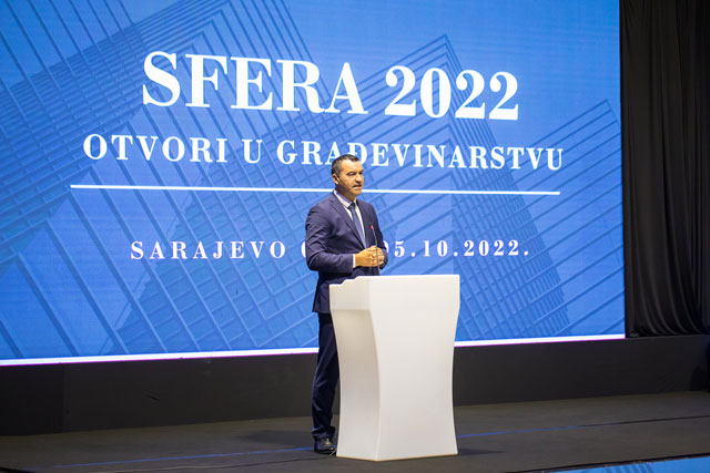 Danas je svečano otvorena konferencija ''Sfera 2022: Otvori u građevinarstvu'' i trajaće dva dana. Čast da je otvori pripala je ministru privrede kantona Sarajevo Adnanu Deliću koji je u svome govoru istakao važnost održavanja ovakvih događaja za BiH, ali i celu regiju. Pozdravio je goste, poželeo im produktivan i uspešan rad i boravak u Sarajevu.