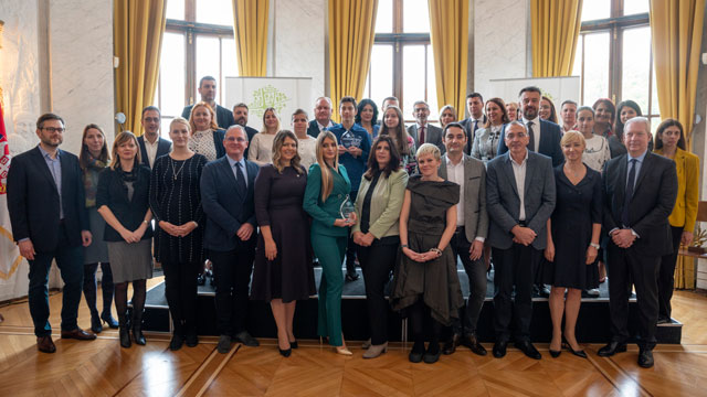 Ambasada Francuske u Srbiji i njeni partneri: Institut Veolia, Saint-Gobain, Veolia, Decathlon, NALED i SKGO, zajednički su dodelili nagrade pobednicima konkursa "Ekoopština" u sredu 12. oktobra.