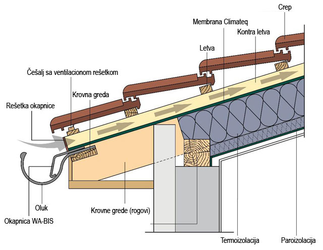 Ventilacija ispod crepa - preduslov dobre funkcionalnosti krova (Foto: Wabis)