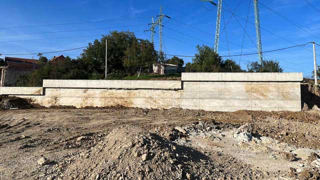 Sanacija klizišta se sastojala od izgradnje bušenih šipova Ø1200mm i to 114 komada dužine 16,0m i 33 komada dužine 18,0m. Na šipovima su izgrađene naglavne grede širine 4,70m i visine 1,0m u 8 kampada, ukupne dužine 220,2m. Ispod 4 naglavne grede urađena su zidna platna visine 2, 3 i 4m i debljine 0,3m.